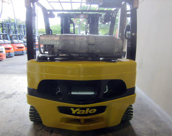 This 2009 Yale forklift is in perfect condition. Everything on this forklift works great! This forklift is ready for use. This forklift has a capacity of 5,000 pounds. This 2009 Yale comes with a triple mast, side shift and a one year warranty on the engine and transmission.
